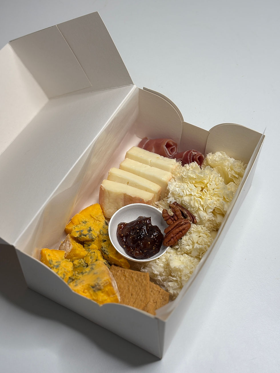 Curated cheese boxes, snack and bites with tea to have with us or take away